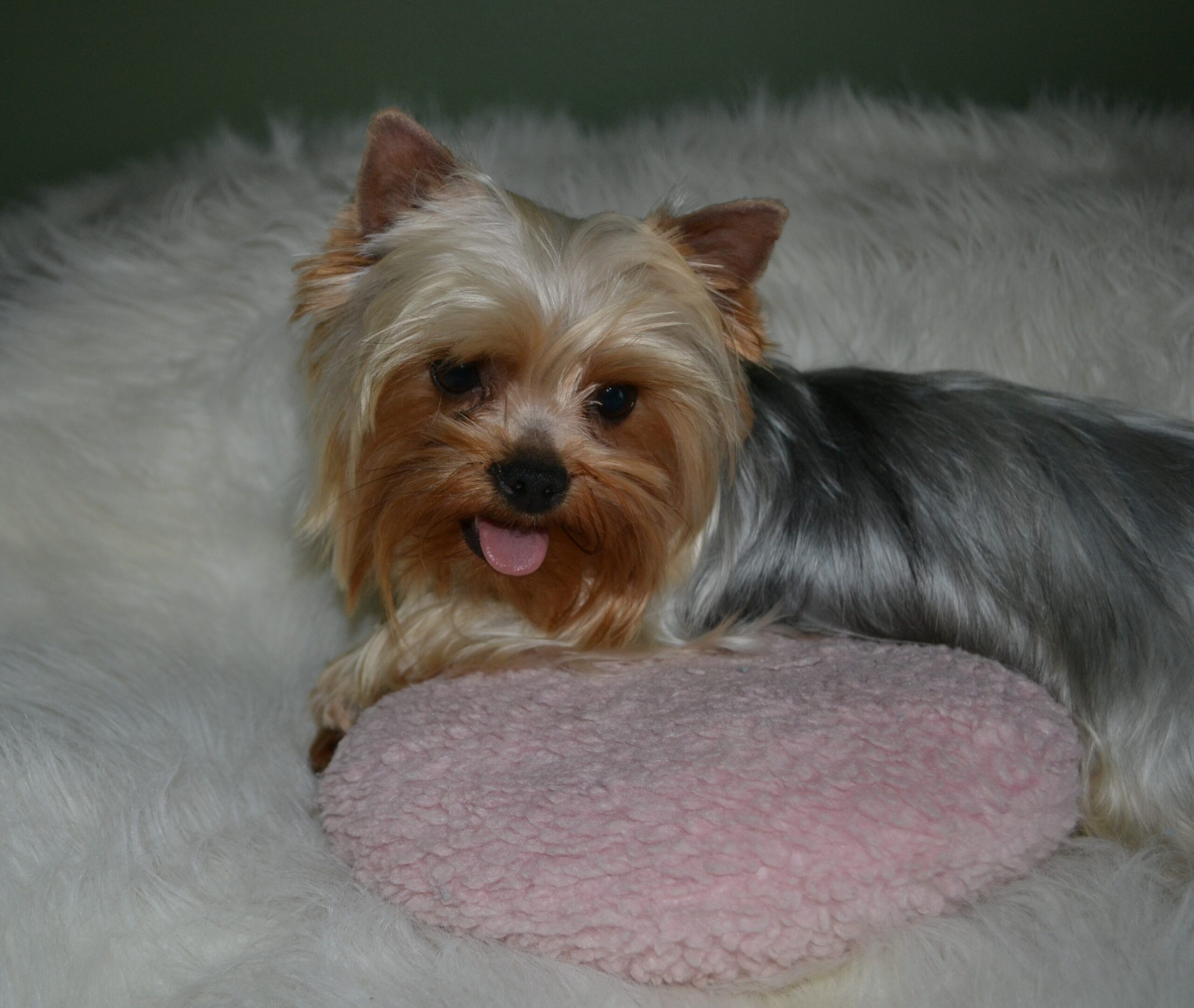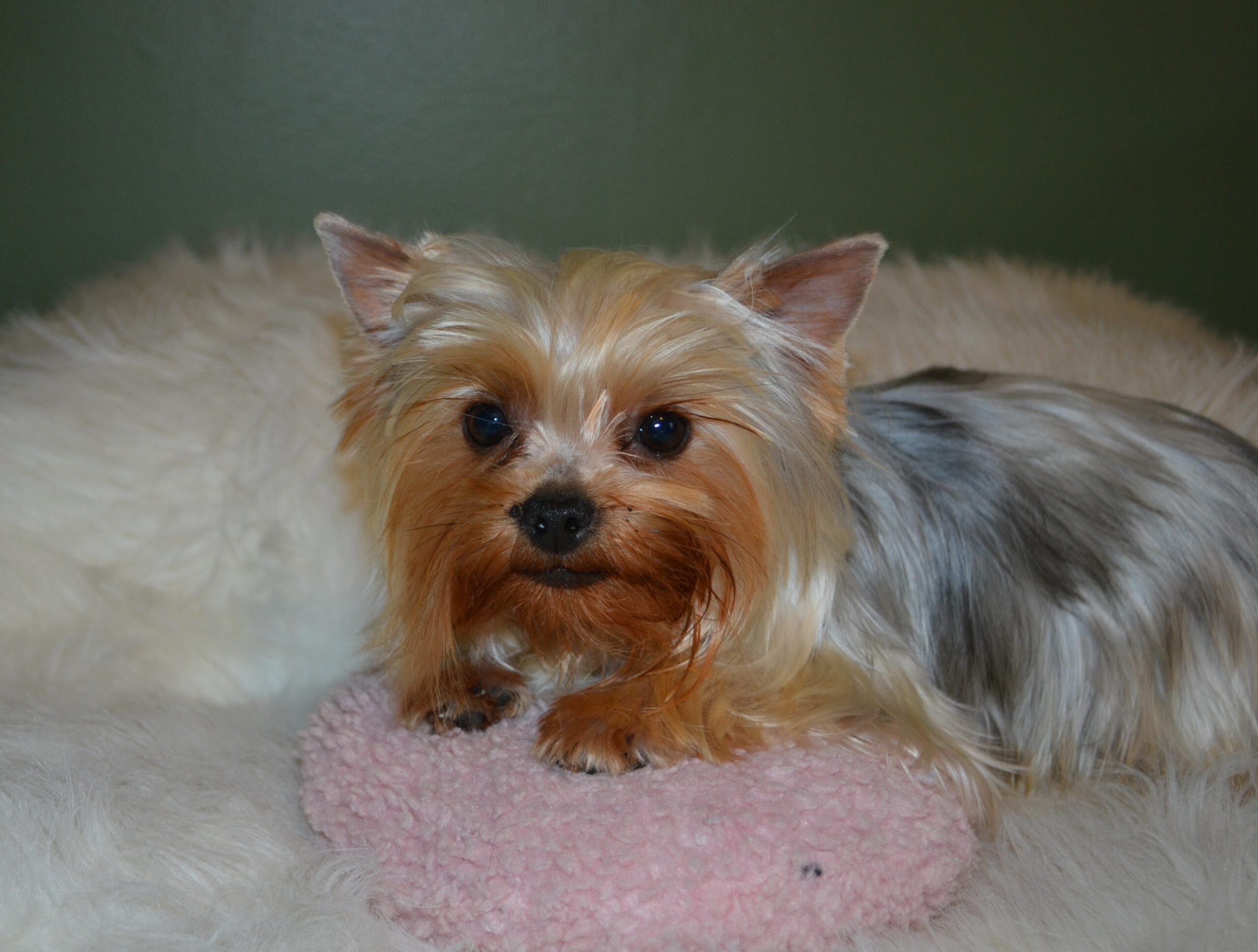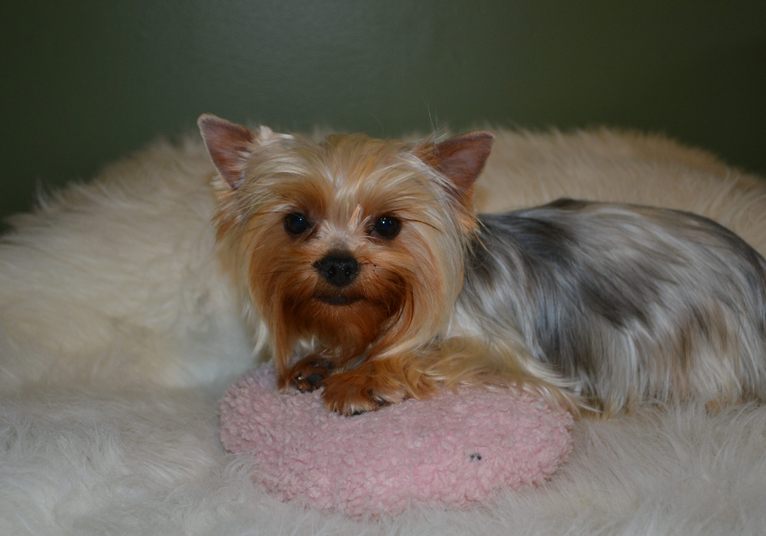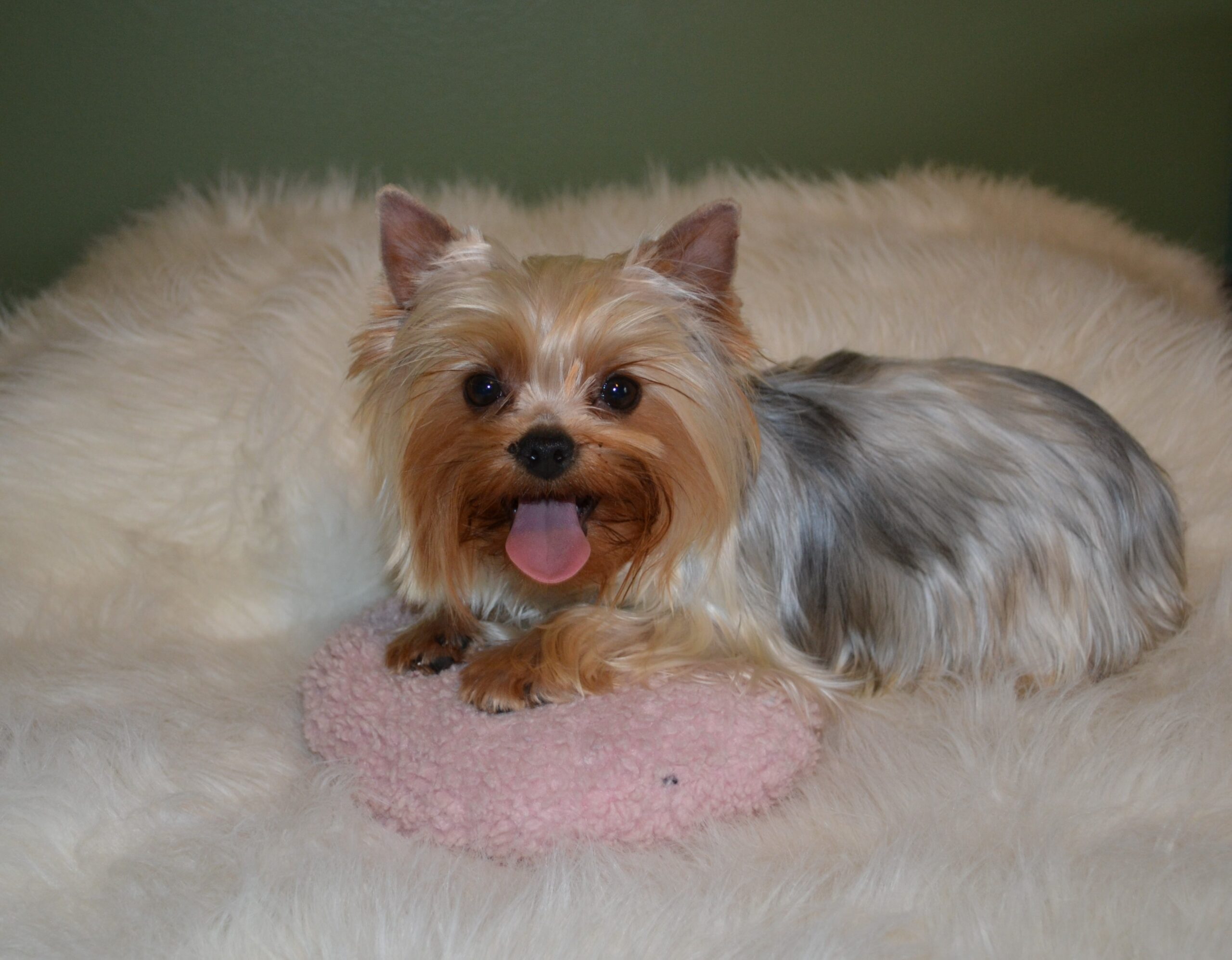 Welcome Miss Dottie Baby! This is one of Bishop`s first puppies out of Bailey. She is 6.5lbs with a gorgeous modified silk coat. She is very playful and full of energy. Loves affection and running "all day long"!