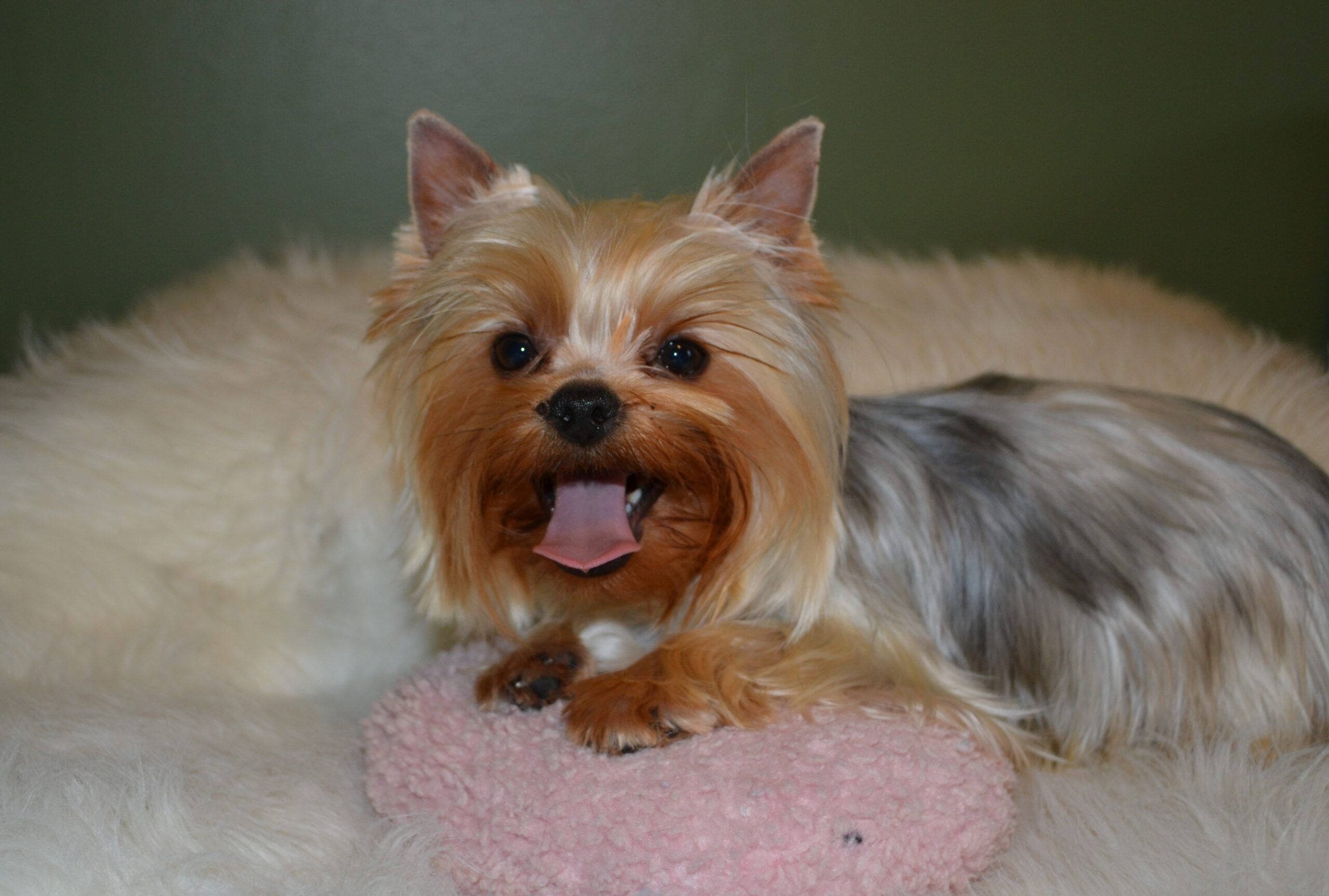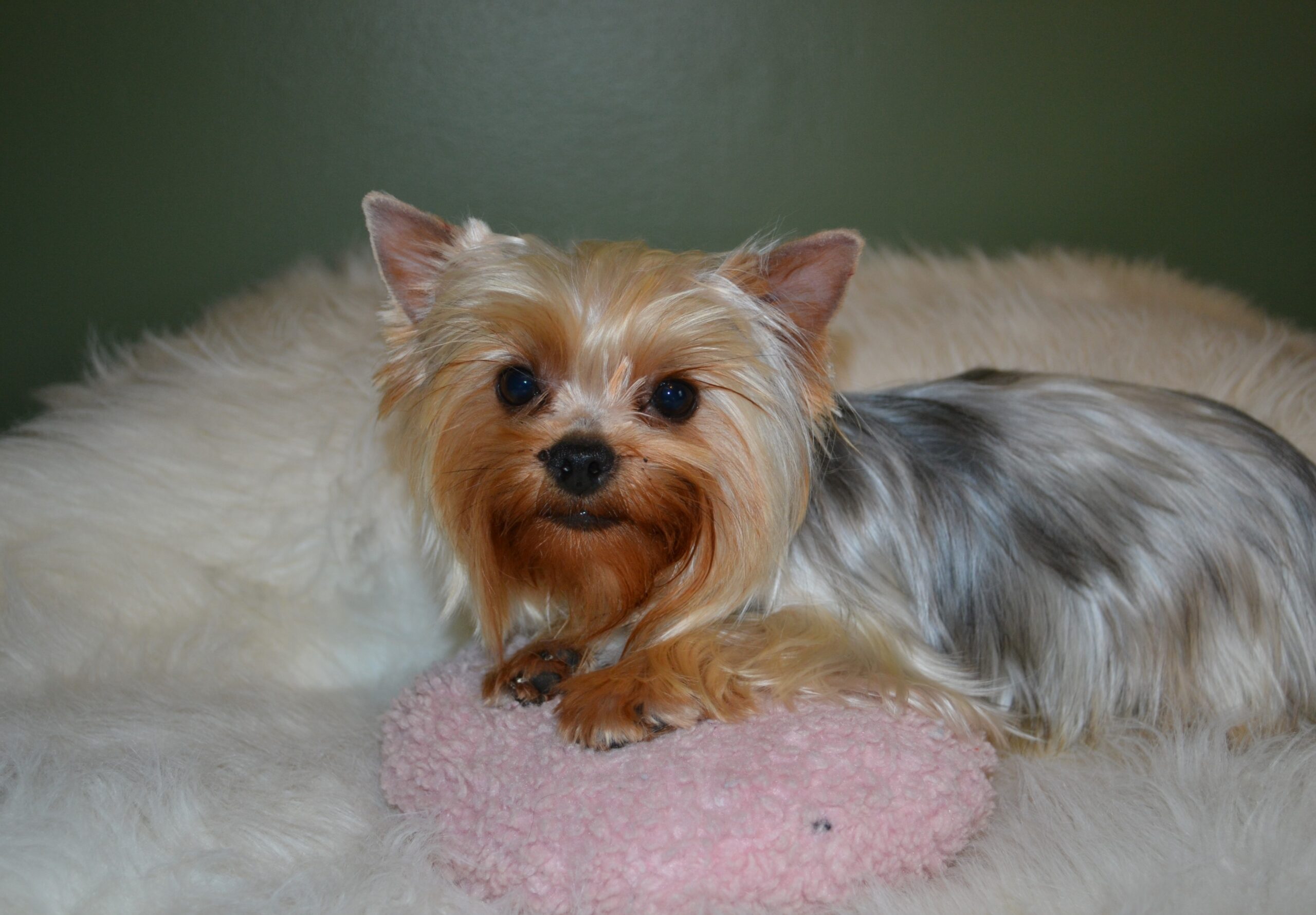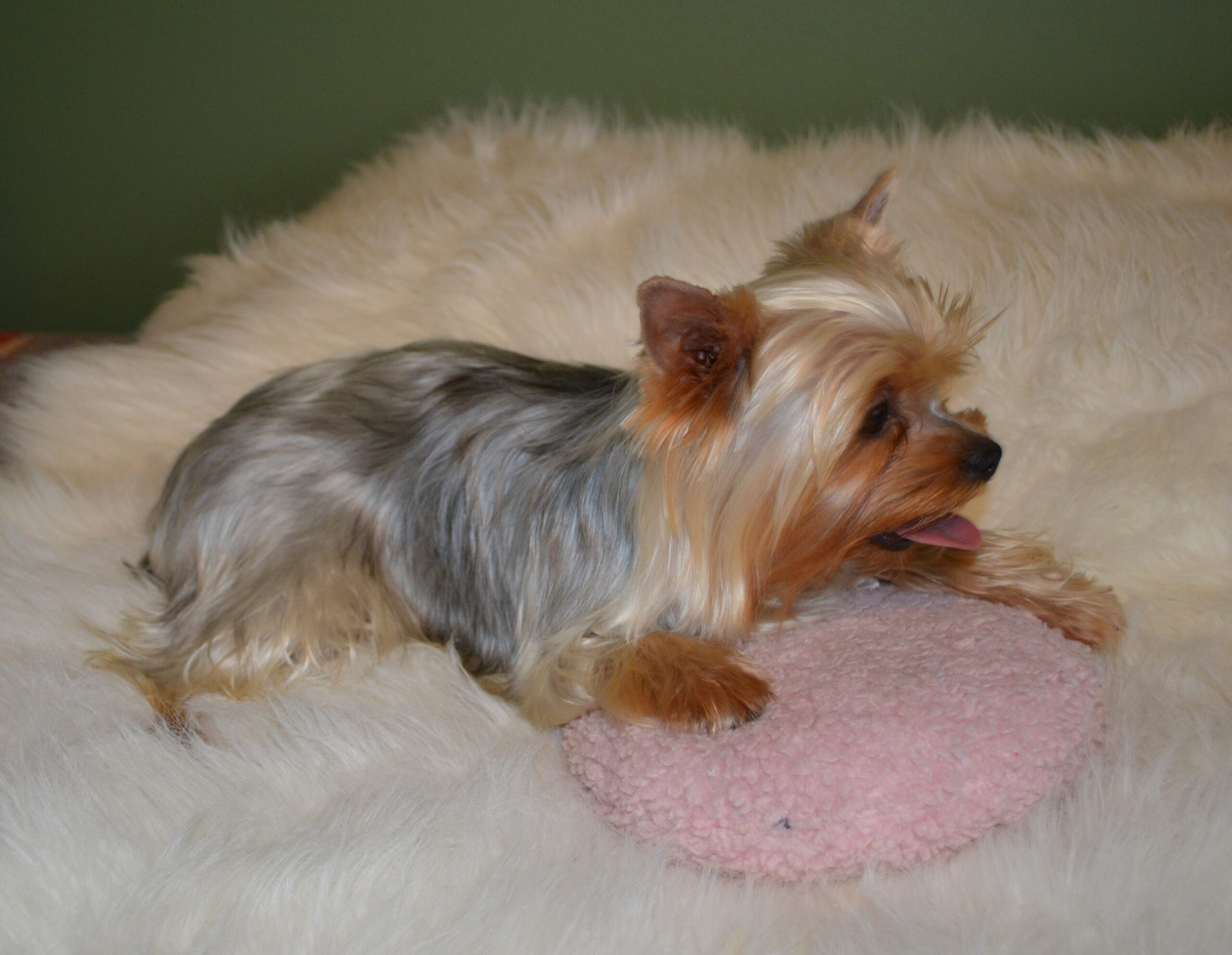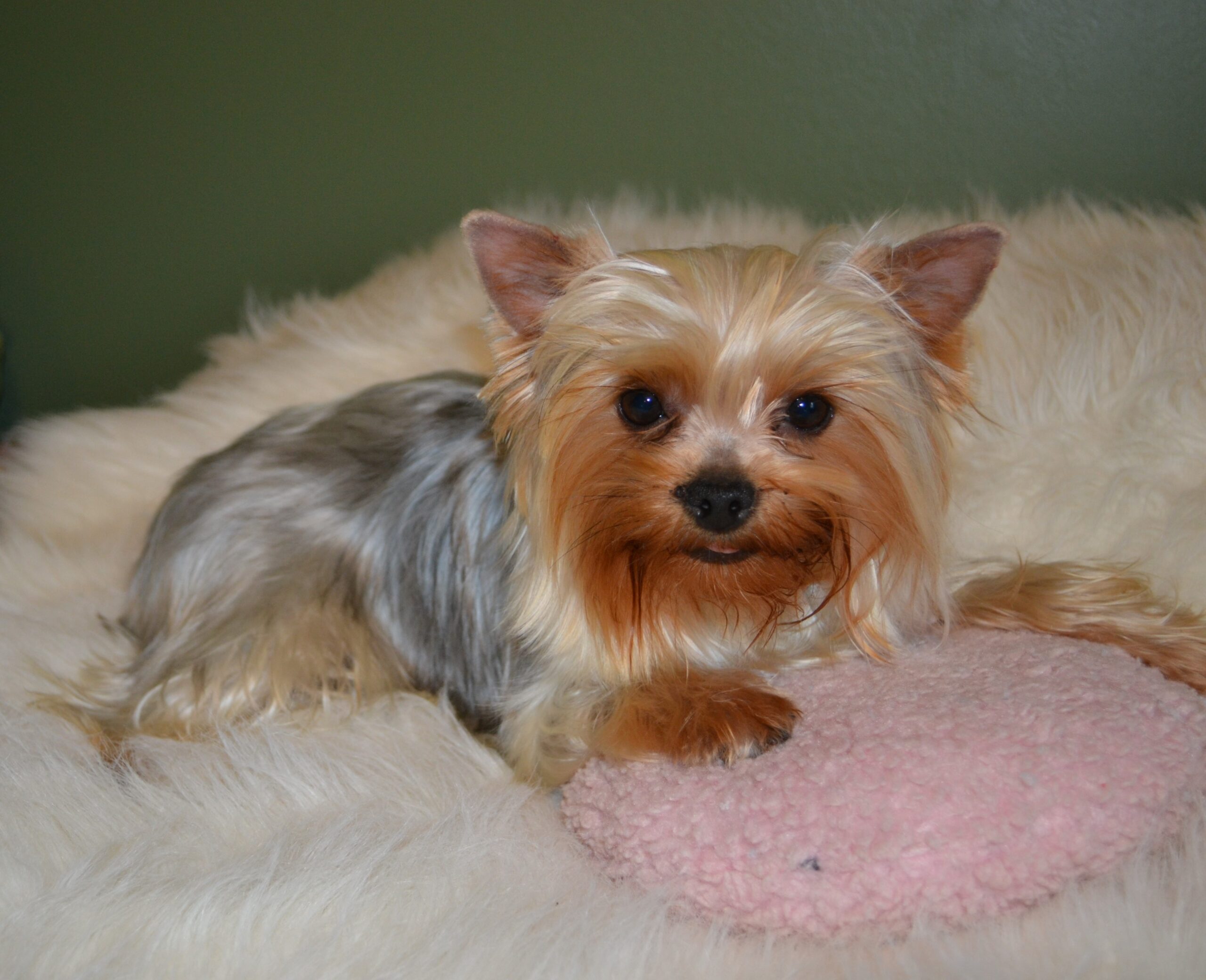 Welcome Miss Dottie Baby! This is one of Bishop`s first puppies out of Bailey. She is 6.5lbs with a gorgeous modified silk coat. She is very playful and full of energy. Loves affection and running "all day long"!
